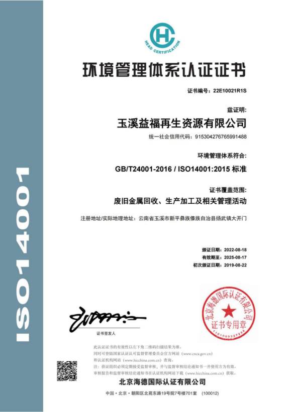 玉溪益福再生资源有限公司建设于2008年7月30日,,,注册资源3000万元,,,员工46人,,, 2022年,,,销售收入8亿多元,,,上缴税金7912万元,,,2023年预计接纳种种废旧物资35万吨。。。是玉溪市新平县循环经济和再生资源接纳龙头企业。。。公司主营收购废旧钢铁,,,加工后,,,再所有销售给云南玉溪人生就是博钢铁(集团)有限公司。。。